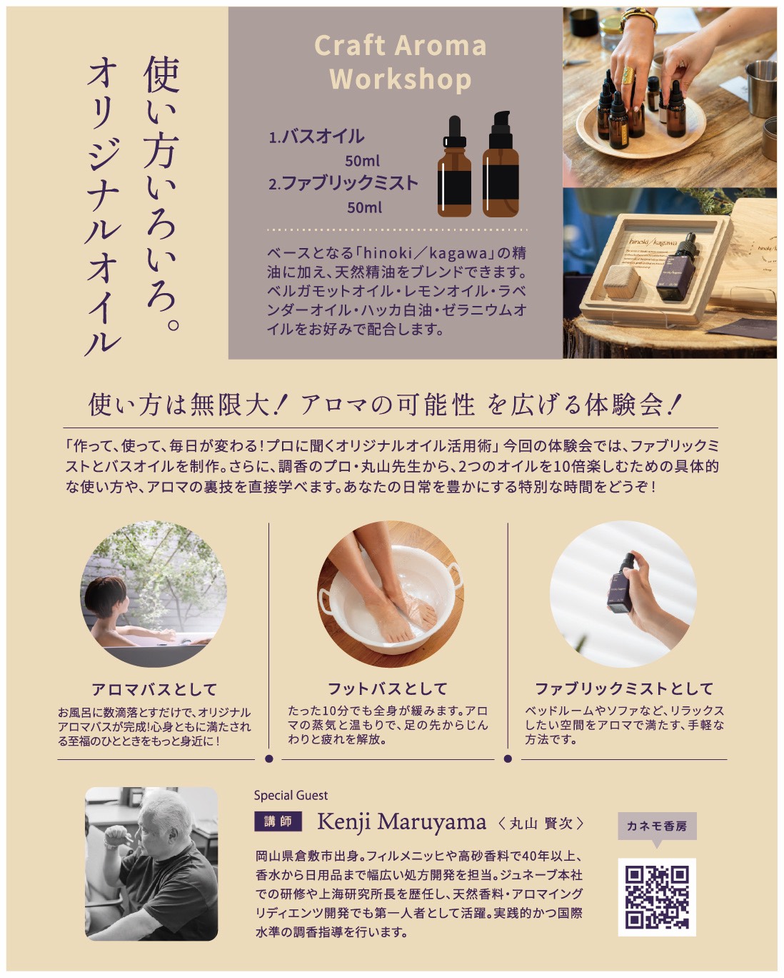 hinoki/kagawaの香りをベースにしたクラフトアロマ体験会開催のお知らせ
