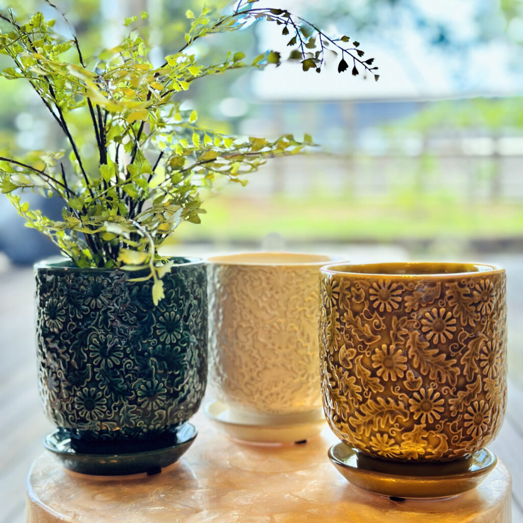 幾何学的な台座が安定感をもたらし、スタイリッシュな印象になります。
