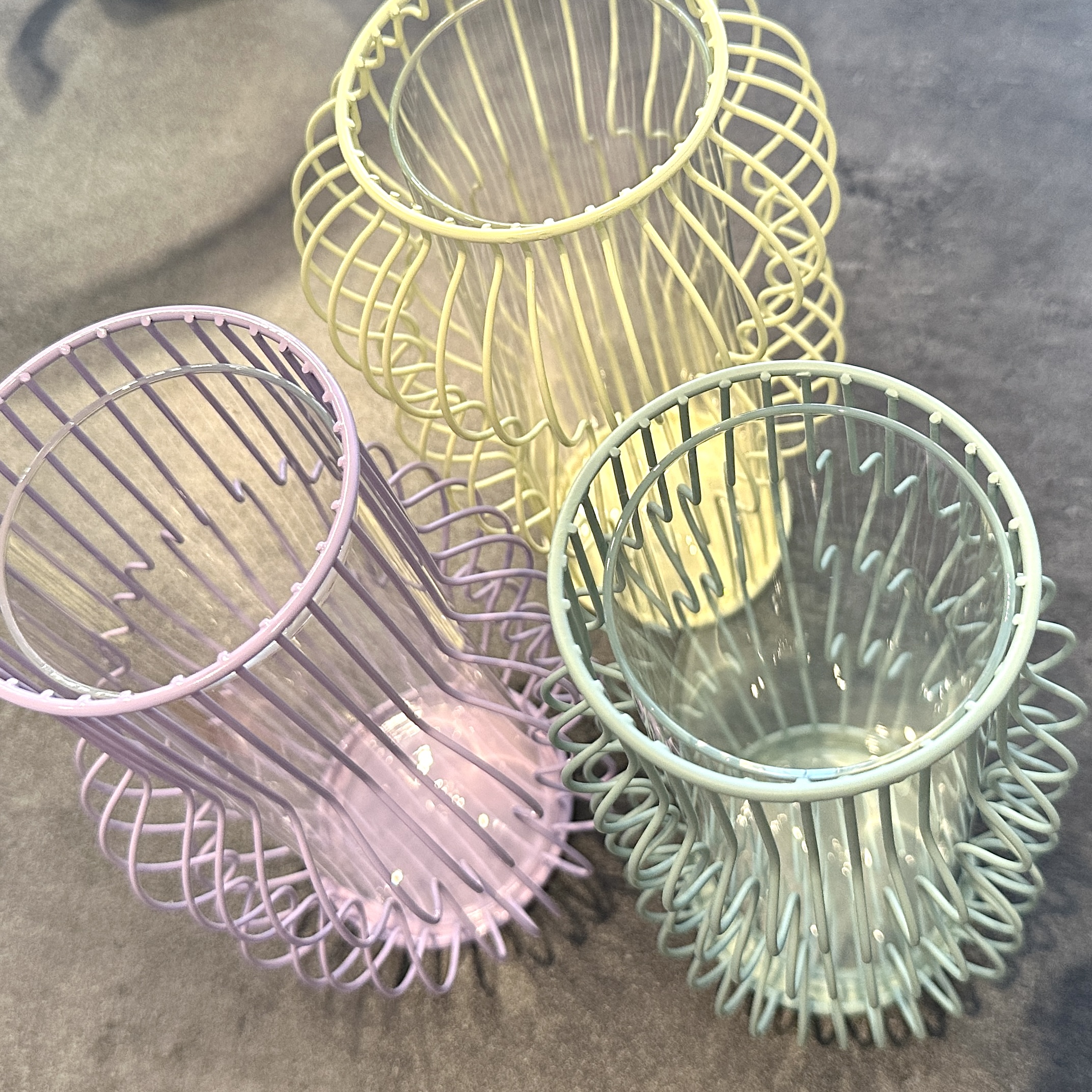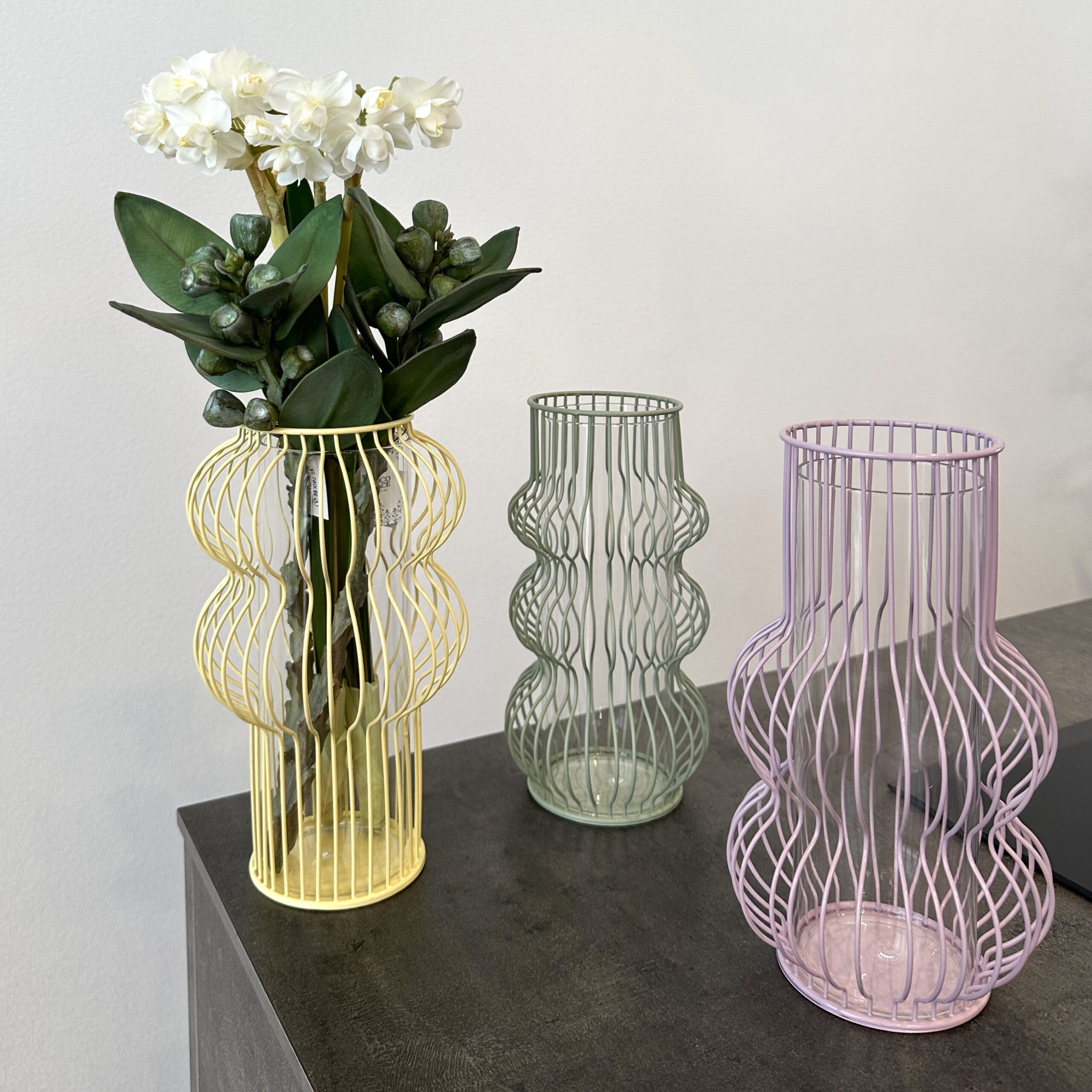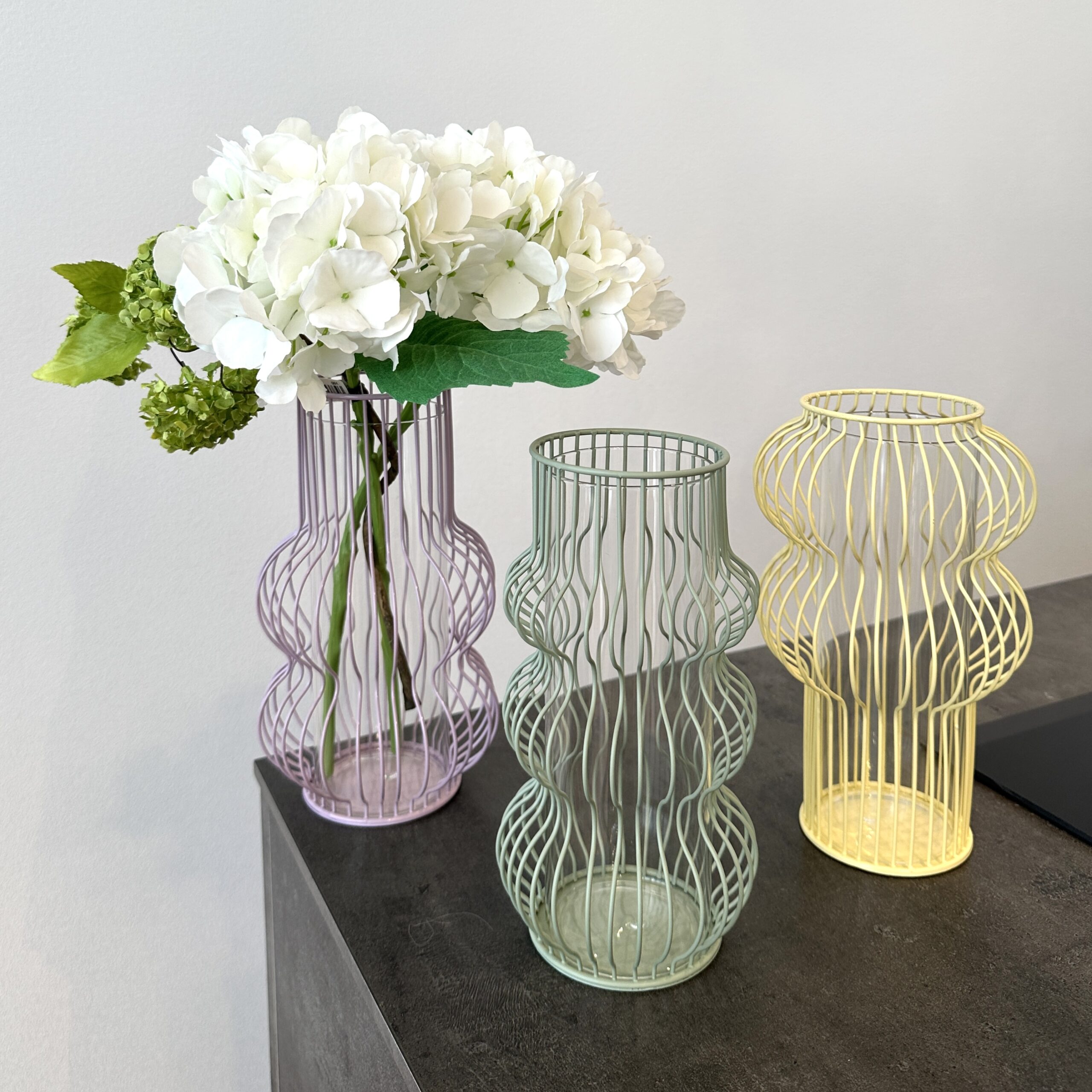 丸みを帯びたやわらかいワイヤーデザインが特徴のフラワーベース。