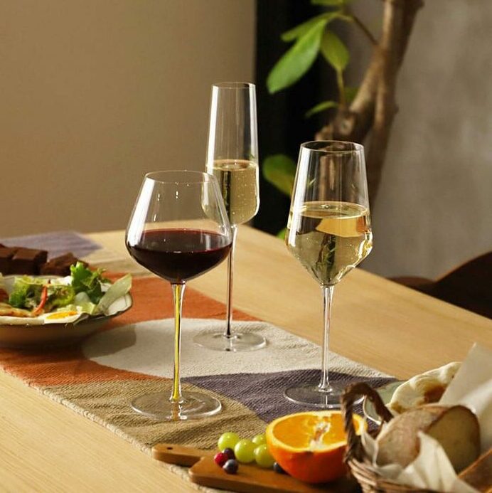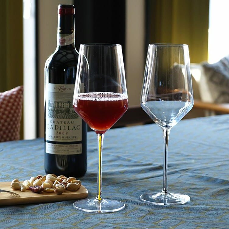 透明度が高いクリスタルガラスは、ワインの見た目や香りをより感じやすくなります。リム(飲み口)は約1.2mmで薄く作られている為、口当たりも良いです。