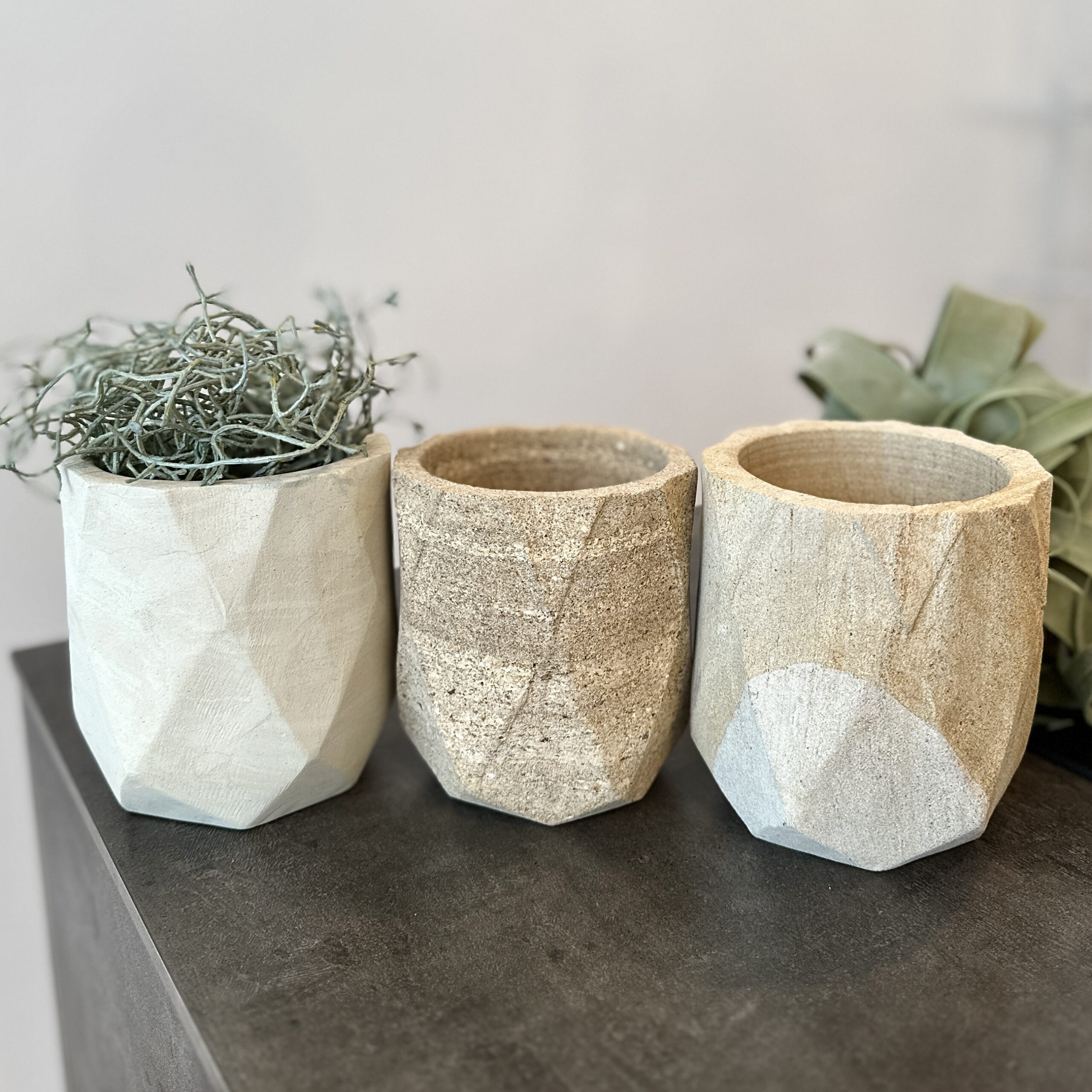 天然の石材から削り出したプランツポット。